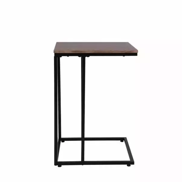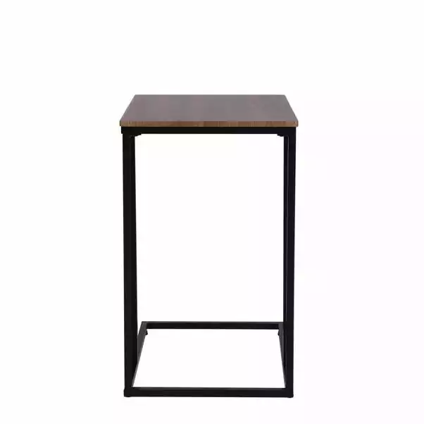 Boasting a modern and practical styling, with a trendy rustic wood effect top, the multi-functional Charlie side table would make a great addition to any living space. The black finished metal legs are designed to slide easily beneath your sofa or armchair for use as an impromptu desk or dinner table, with plenty of space for a laptop or notebook. Ideal for creating multi-purpose spaces, this side table is perfect for compact living spaces and offers quick and easy assembly.