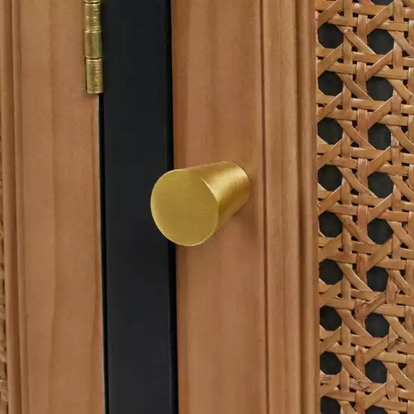 Characterised by the stunning natural rattan fronts and contrasting black surround, the Franco collection brings a modern take on a retro design. Perfect for any contemporary or global styled home, this furniture range is completed with brushed gold effect handles, adding a touch of luxe styling.