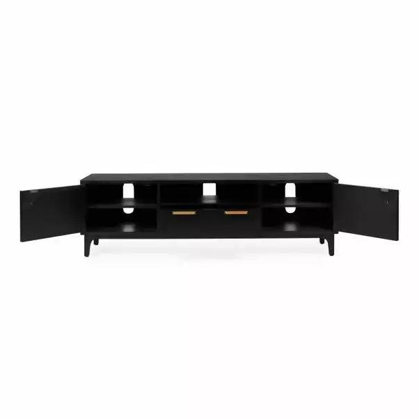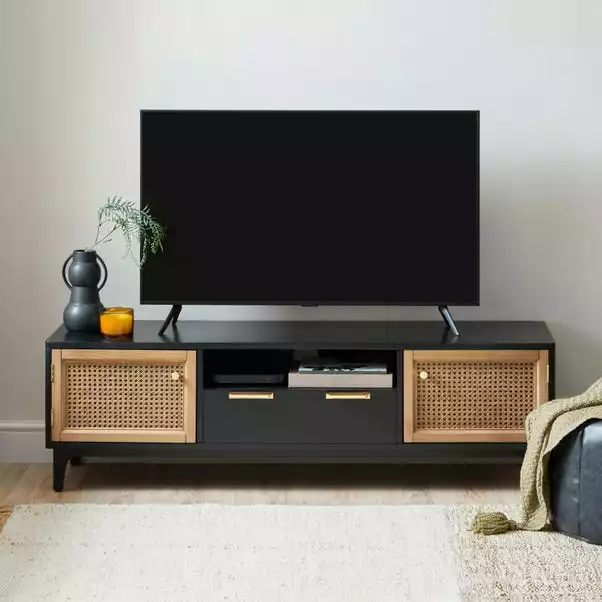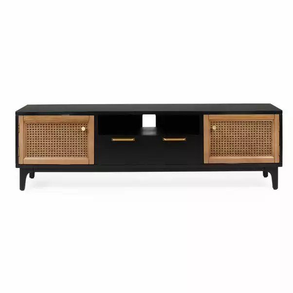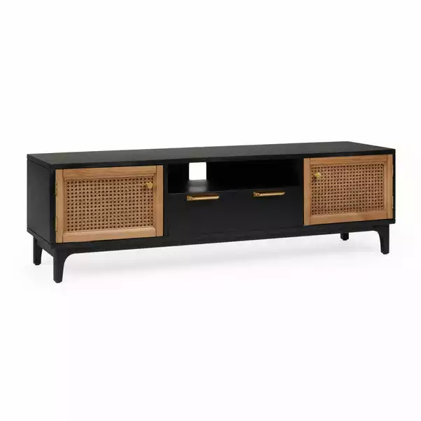 The stylish Franco Extra Wide TV Stand would be a stunning addition to your living room. With an open shelf complete with a large cable aperture, spacious rattan fronted cupboard and a large drawer, this TV stand offers plenty of storage space.