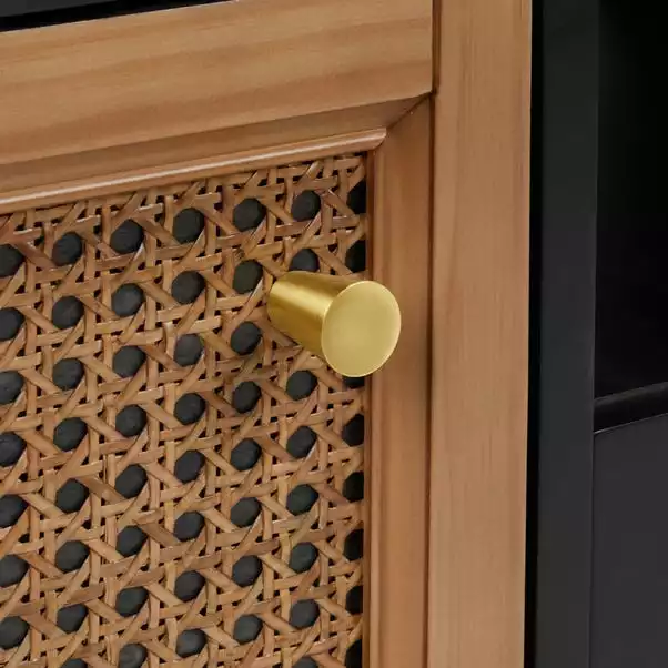 Characterised by the stunning natural rattan fronts and contrasting black surround, the Franco collection brings a modern take on a retro design. Perfect for any contemporary or global styled home, this range is completed with brushed gold effect handles, adding a touch of luxe styling.