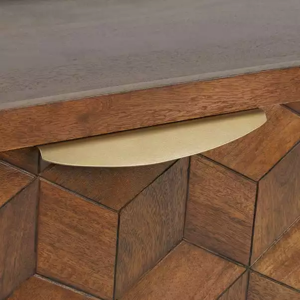Boasting exceptional quality and sturdy construction, the Hex range is beautifully crafted from solid mango wood using traditional joining techniques. This unique collection features a gorgeous hexagonal design, creating a stunning 3D visual effect whilst highlighing the natural beauty of the wood, perfectly complemented by the angled legs and brass effect handles.