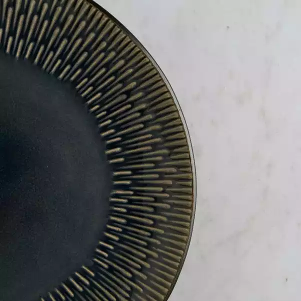 Crafted from earthenware, this beautiful blue 12 piece dinner set is an elegant addition to any dining table setting. Featuring an embossed reactive glaze finish and a hand thrown shape each piece created is unique. This dining set is dishwasher safe for ease of cleaning after every use.