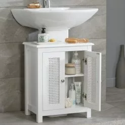 Featuring louvre door detailing, the Tuscany under basin unit has double door access with push to close doors and 2 shelves, where you can neatly store your bathroom essentials. Flat packed and easy to assemble.
