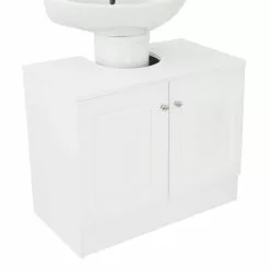 Boasting a crisp, clean satin finish, this Jaxon Console Unit is ideal for keeping your bathroom neat and tidy. Made from durable MDF and with stylish chrome handles, this unit is strong, versatile, and easy to assemble. This sleek cabinet features ample internal and external storage space and shelves inside so you can organise all your bathroom essentials easily. This unit features a timeless white design that would compliment any bathroom interior beautifully. This item can be coordinated with other items from the Jaxon Range.