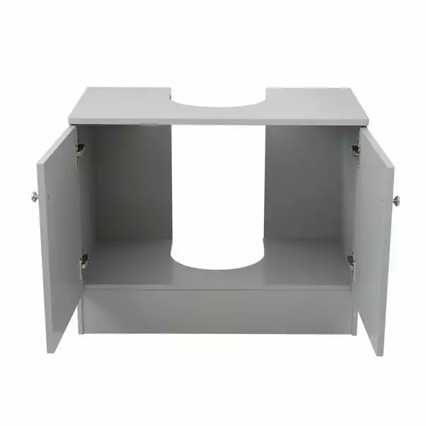 From the Verona grey bathroom collection, this under sink unit has been designed with a contemporary grey finish and features a double door opening complete with a spacious inside making it ideal for storing your bathroom essentials and cleaning products.