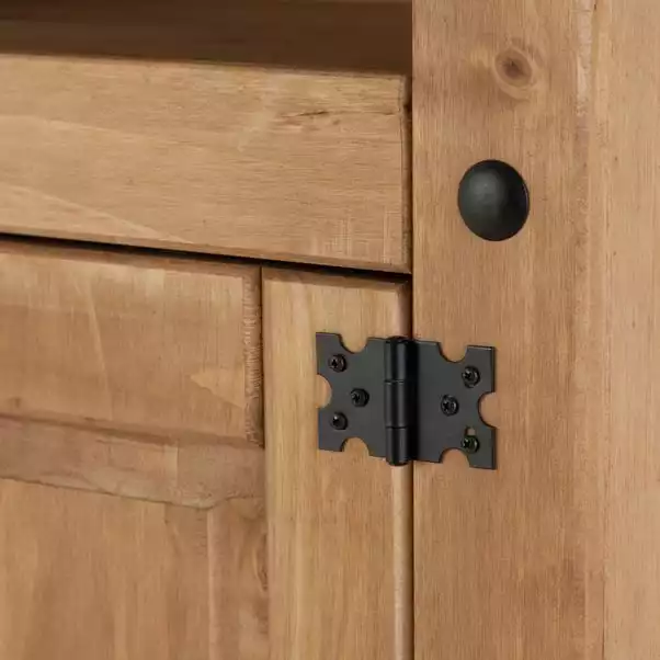 This attractive distressed waxed pine display unit will bring a new dimension to any dining room. The shelves are perfect for displaying and the large cupboard below can be used for plates, cutlery and place mats.