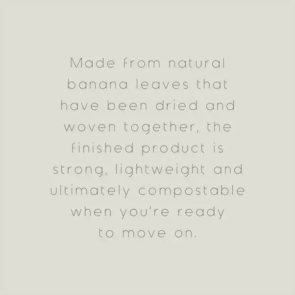 Made from the natural banana leaves that have been dried and woven together, the finished product is strong, lightweight and ultimately compostable when you’re ready to move on.